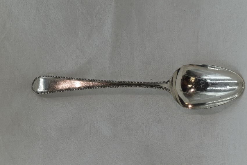 A Georgian silver table spoon in the Old English bead pattern, London 1780, George Smith