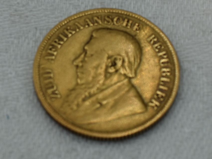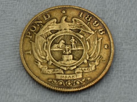 A Gold South Africa 1898 One Pond (gold 0.9160) weight approx just below 8 grams, in plastic case and card folder