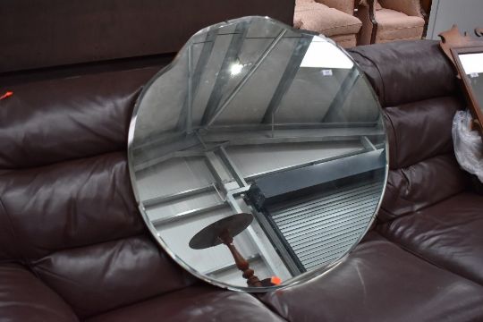 A large vintage frameless mirror, diameter approx. 91cm