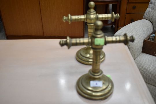 A pair of antique brass altar crucifixes , height approx. 22cm