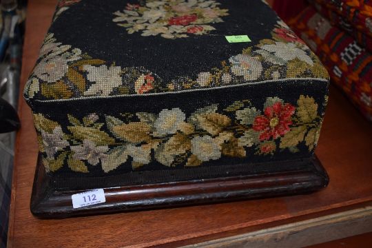 A Victorian mahogany and tapestry work footstool