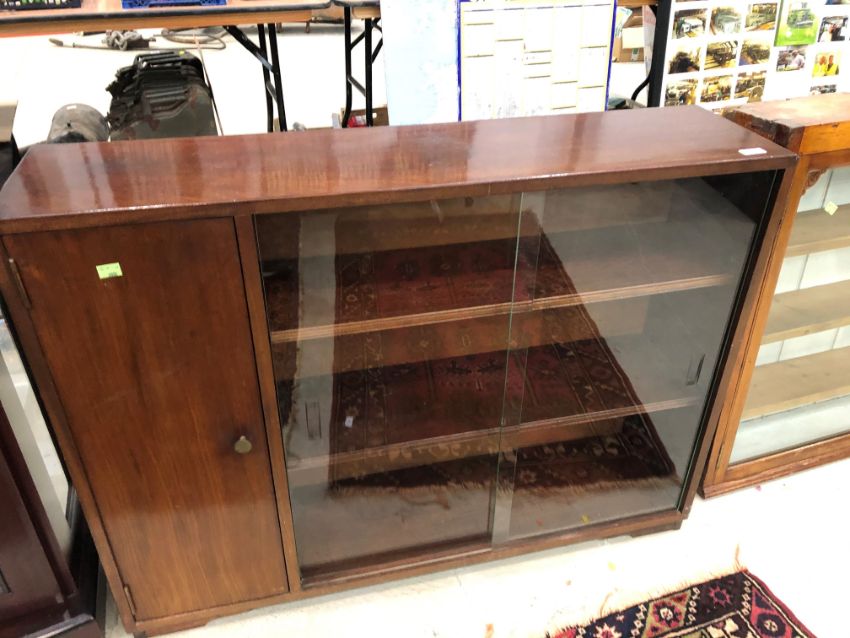A vintage mahogany bookshelf with side cupboard, width approx. 106cm