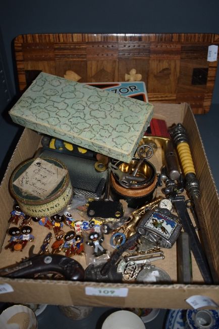 A collection of vintage items including Robertons jam badges, vintage AA memberships badges,letter openers,a boxed Rolls razor and much more.