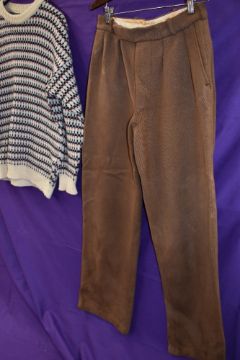 A pair of vintage 1950s gents button fly wool trousers in brown and a retro Laxey woolen mill jumper.