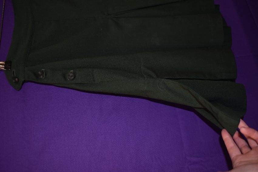 A pair of bottle green 1940s culottes/shorts, pleats to sides and button fastening to each.