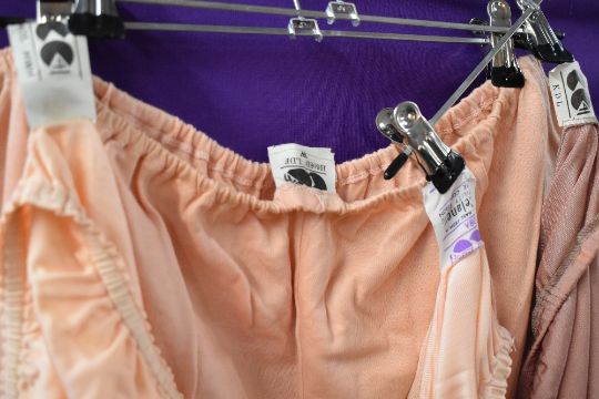 Four pairs of 1940s CC41 bloomers , all having really crisp clear utility labels, in various sizes and appear to be unworn,a couple with a few age spots.