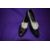 A pair of antique black leather and cream suede shoes with stack heel and mother of pearl button detail, around a uk 6.5.