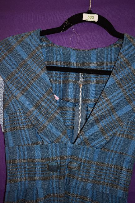 A vintage 1950s American blue checked dress having sailor collar and ILGWU label,and a pink Peter Barron slub fabric dress with tassels to back.