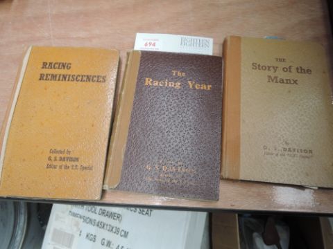 Three TT books , story of the Manx dated 1948, The racing year dated 1950 and a Racing Reminiscences 1948 G S Davison two first editions and one second