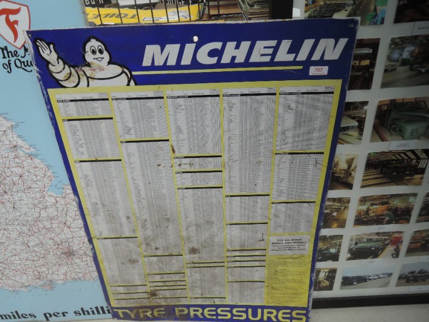 A metal Michelin tyre pressure wall chart.