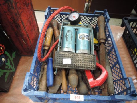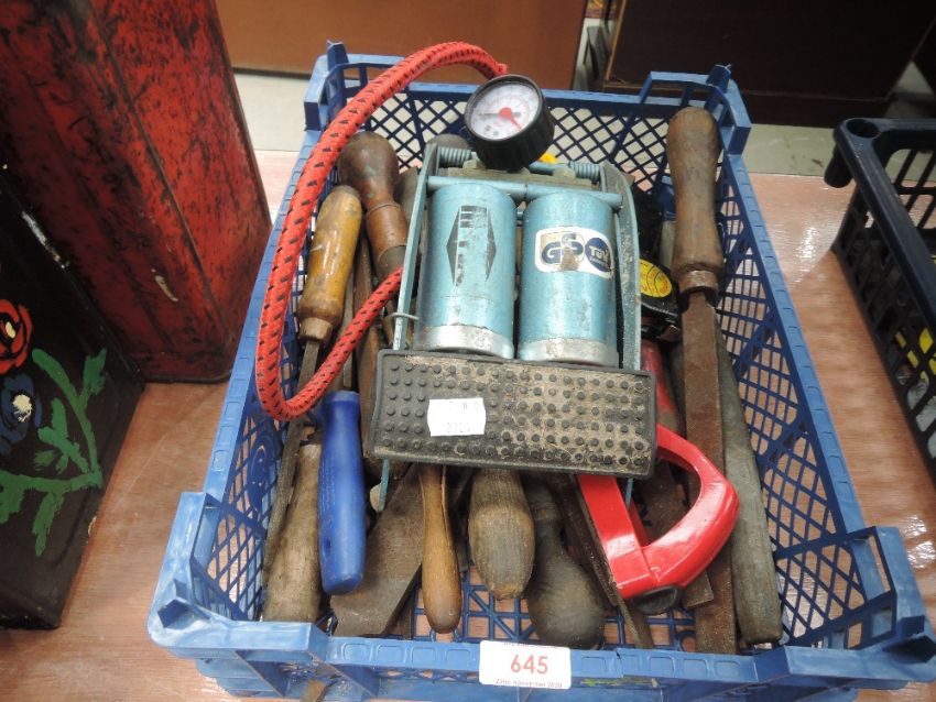 A selection of files and a foot pump.