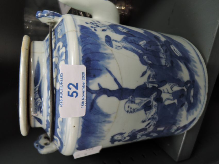 A traditional design Chinese export teapot hand decorated with scenes of dance (AF) and enamel detailed saki cup