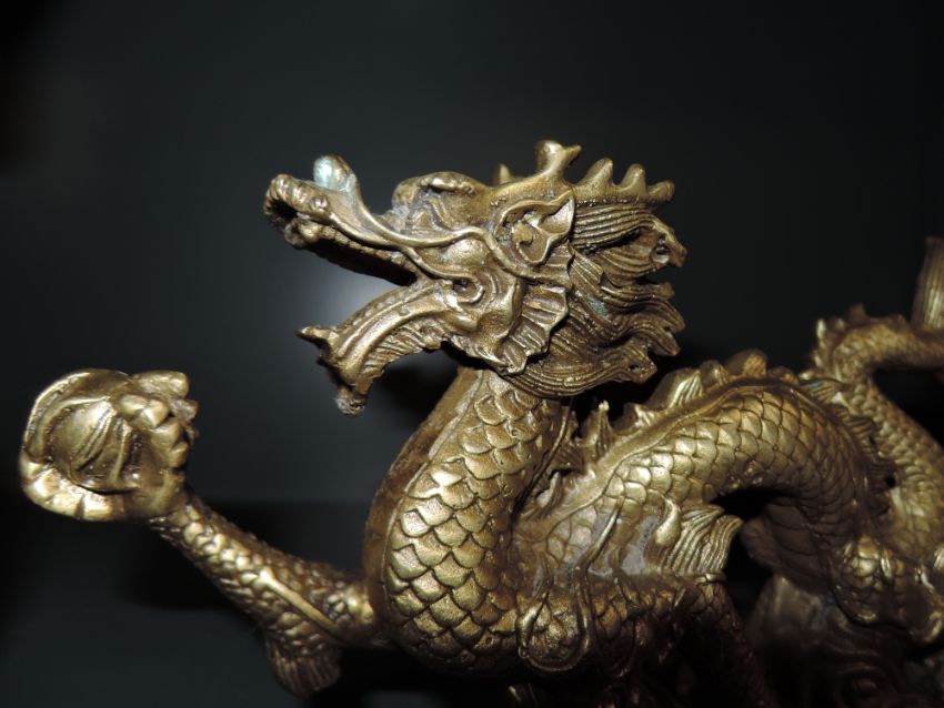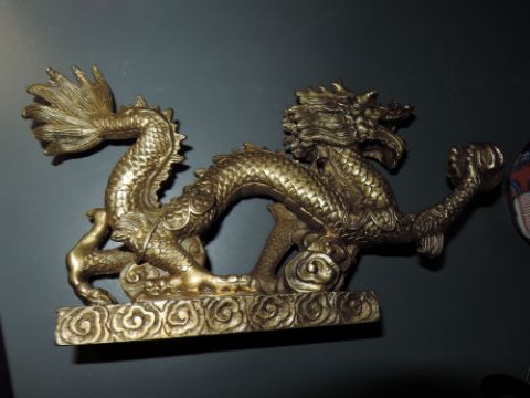 A brass cast Chinese dragon figure measuring approx 20cm long
