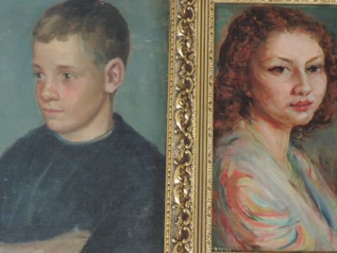 An oil painting, Patti Meyer, portrait of a lady, indistinctly signed, 30 x 20cm, framed and an oil painting Patti Meyer, portrait of a boy, 30 x 24cm,
