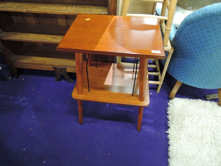 A modern stained frame rack table, possibly for vinyl records and turntable
