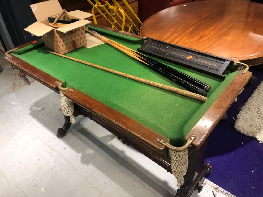A vintage miniature snooker table 130 x 72cm, labelled Harold Holt, Blackpool, with accessories (stand NOT included)