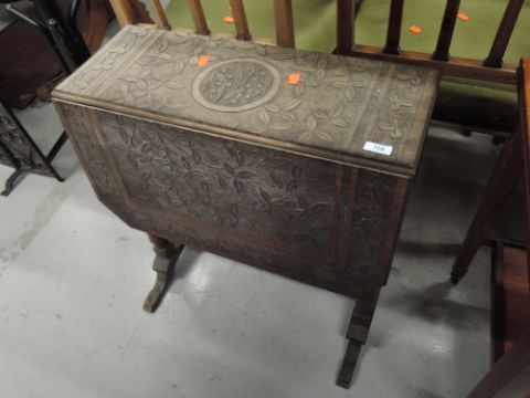 A 19th Century carved drop leaf occasional table, width approx. 62cm