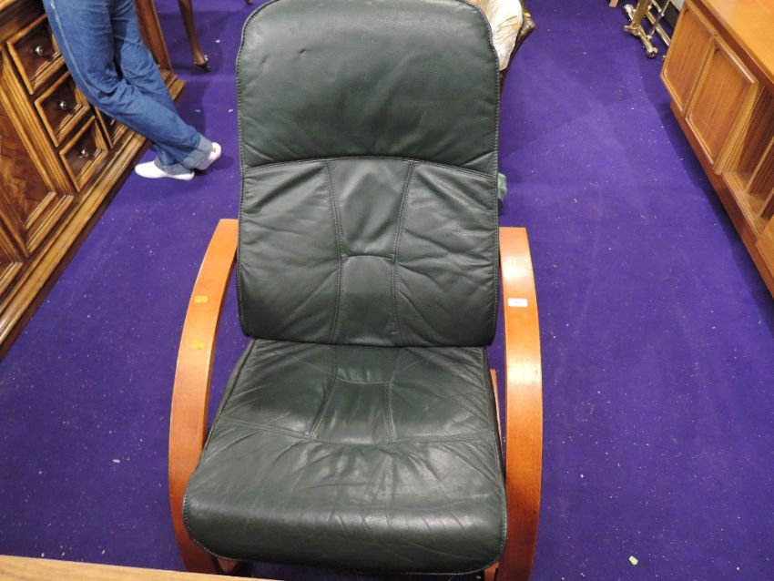 A modern ply frame armchair, in green leather