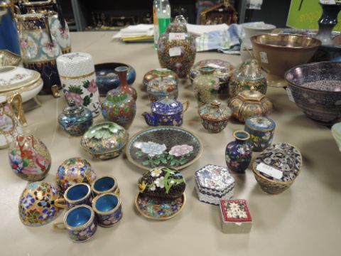 A large selection of cloisonne items including cases decorations and vase etc