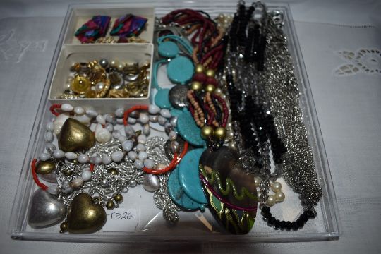 A selection of costume jewellery necklaces and earrings including a pair of Trifari clip back (AF)