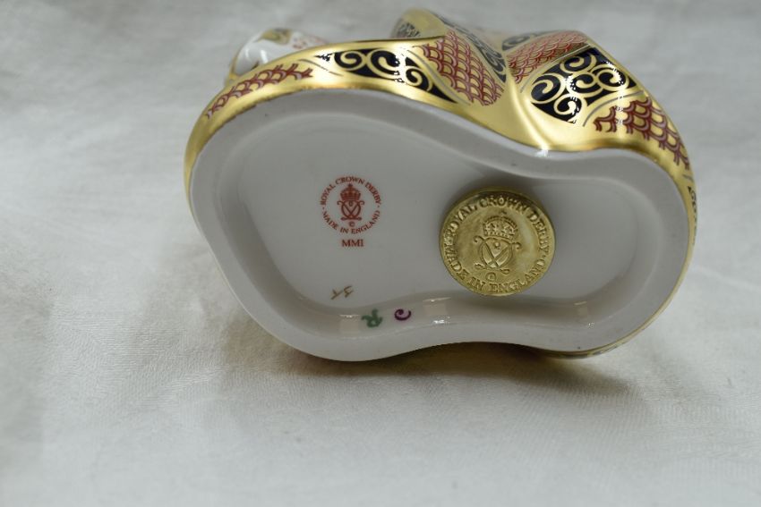 A Royal Crown Derby Snake paperweight, boxed with gold stopper