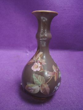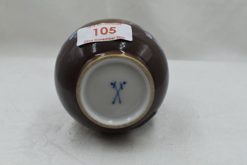 A squat vase by Meissen bearing double sword to base having naturalistic ground with floral imagery