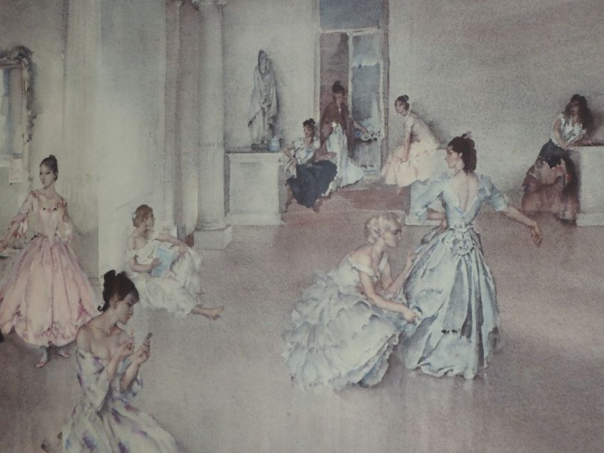 A print after William Russell Flint, Dressing For The Operata, signed framed and glazed 40 x 67cm