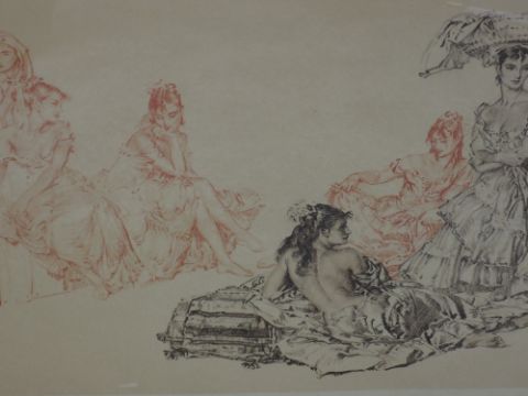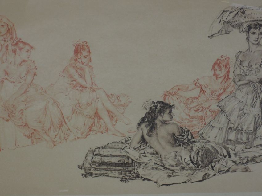 A print after William Russell Flint Gypsy Ladies in Conversation, signed 40 x 70 cm framed and glazed