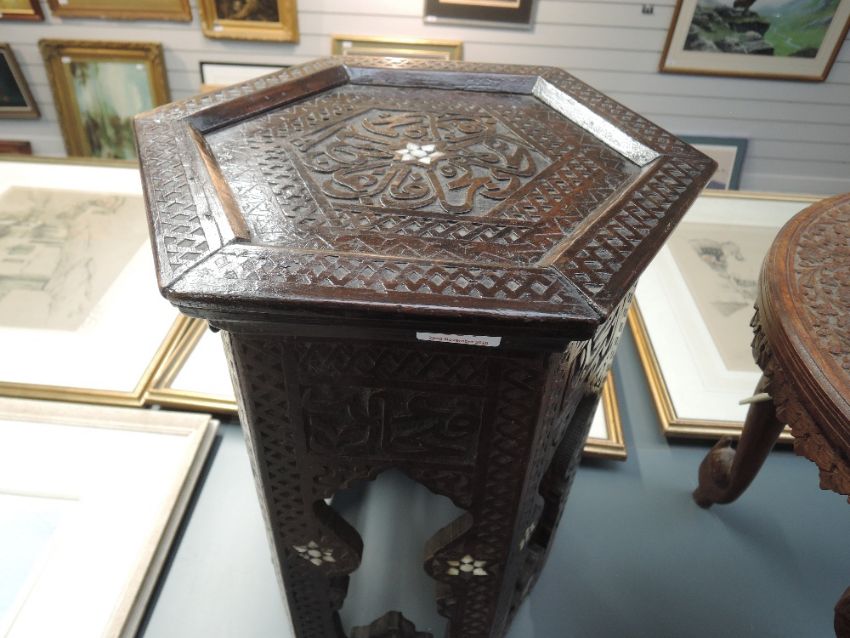 A hand carved Islamic fold away table