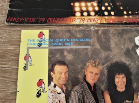 A 1985 Christmas fan club magazine and a 1979 crazy tour programme.