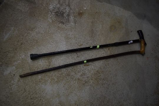 Two walking sticks including white metal mounted, probably silver