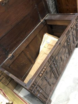 A period oak three panelled kist , nice proportions, width approx. 122cm