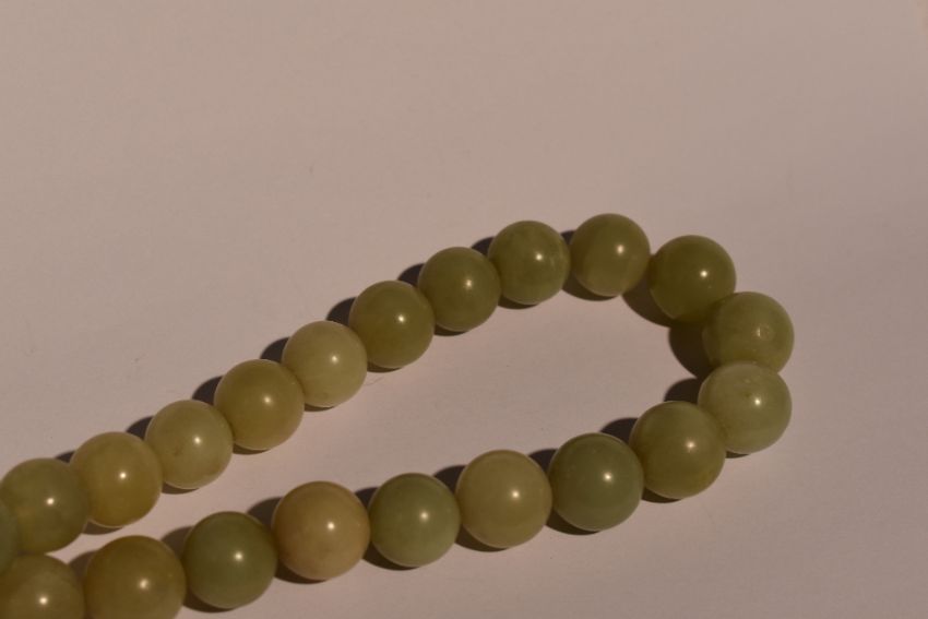 A string of Jadeite style beads of large even form, diameter approx 12mm, approx 16' & 119g