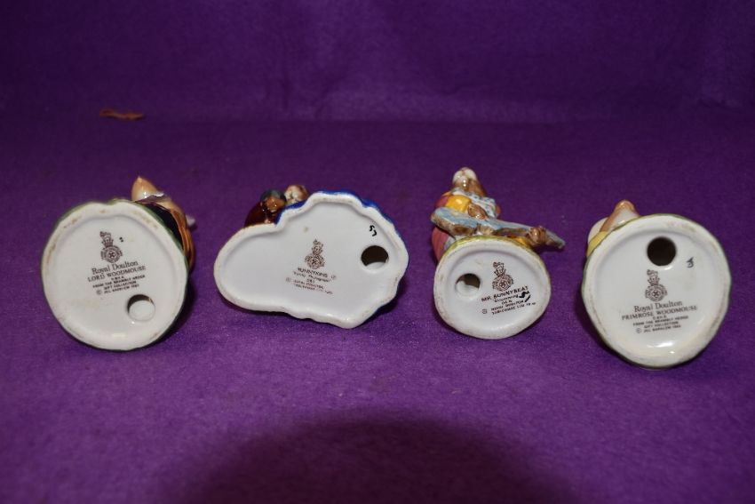 Four Royal Doulton Bunnykins and Brambly Hedge figures, Family Photograph DB1, Strumming DB16, Lord Woodmouse DBH4 and Primrose Woodmouse DBH8