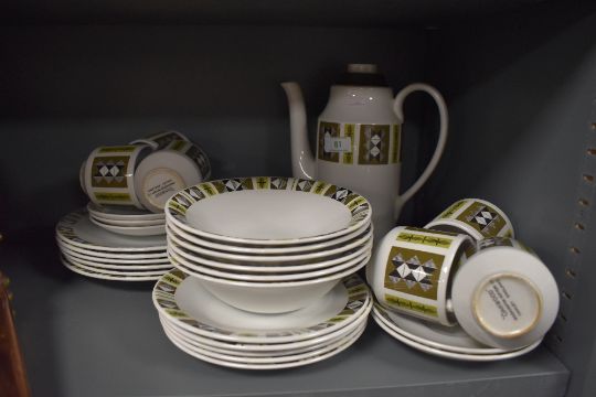 A Mid century Coffee Washington pottery 'Oakwood' service including coffee pot, cups ,saucers,plates and bowls, around twenty nine items.