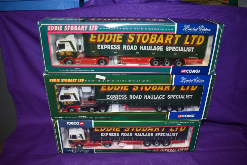 Three Corgi Limited Edition 1:50 scale diecast Eddie Stobart Articulated Wagons, all boxed 75804, 76602 &CC13405