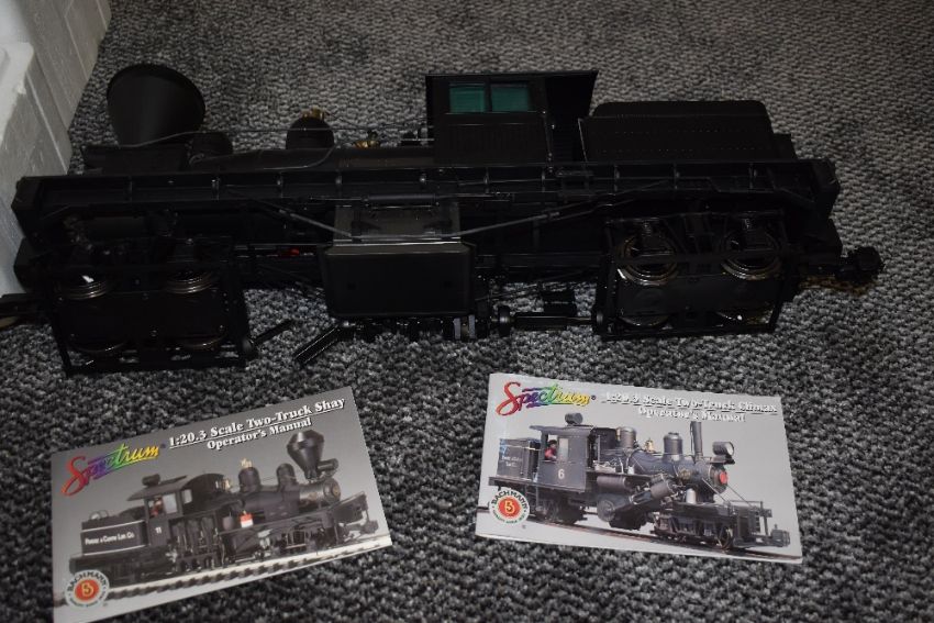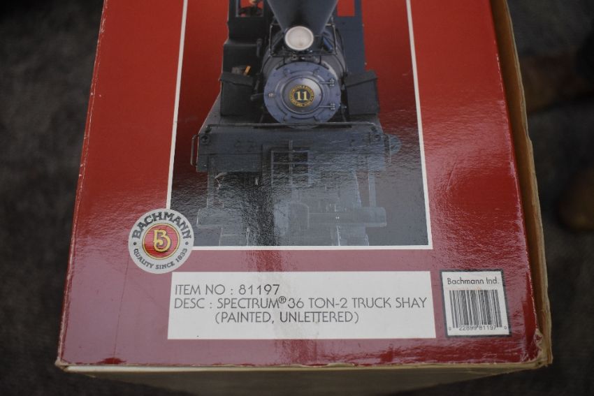 A Bachmann Spectrum G Scale Two Truck Shay 36 Ton Loco & Tender, painted, unlettered, in original box 81197