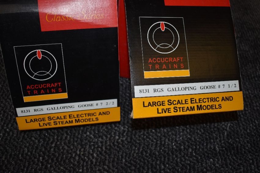 A Accucraft Trains Classic Series G Scale Electric and Live Steam Model, RGS Galloping Goose in two boxes with outer card box