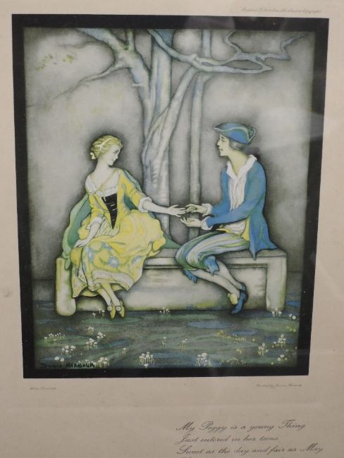A pair of prints, after Jennie Harbour, My Peggy, 28 x 17cm, framed and glazed