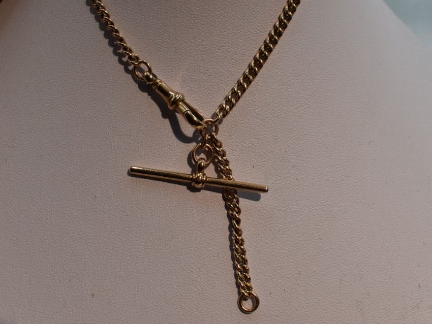A 9ct gold watch chain with bar, approx 12' & 12.5g