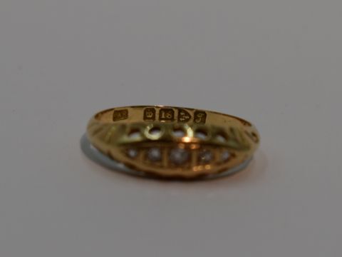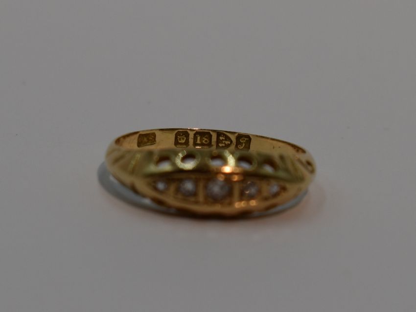 A lady's dress ring having five graduated diamond chips in a gallery mount on an 18ct gold loop, size N