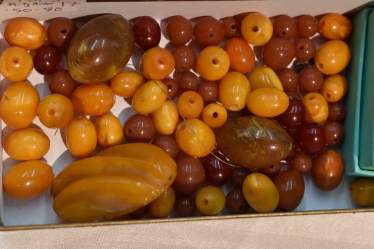 A small selection of loose beads including Butterscotch Amber, coral branch, Carnelian etc
