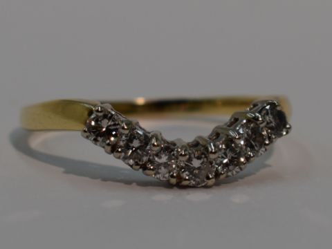 A lady's shaped half eternity ring having seven diamonds, total approx 0.35ct in a curved claw set mount on an 18ct gold loop, size S