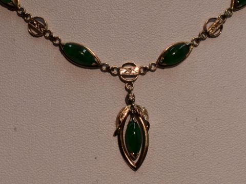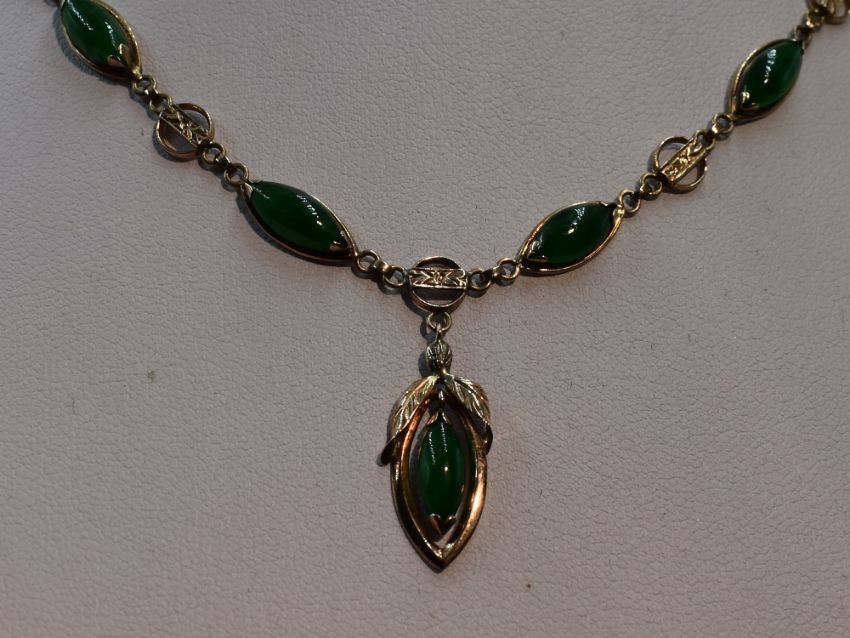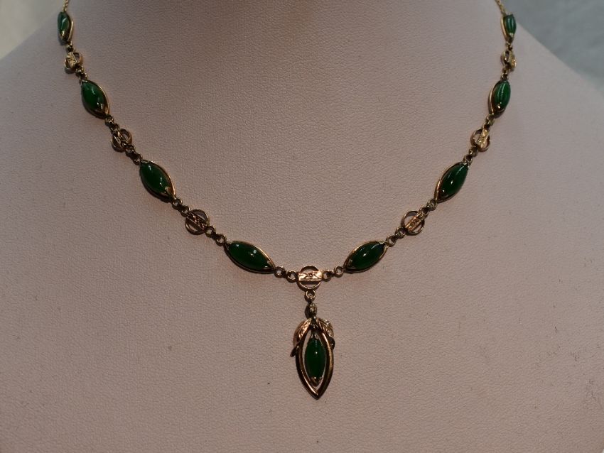 jade pieces are approx 8mm x 4mm gross weight of necklace & earrings approx 10.2g