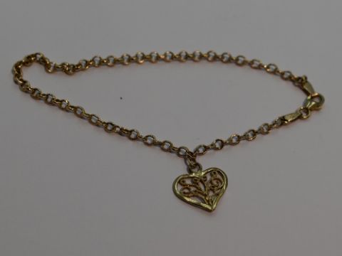 A 9ct gold belcher ankle chain with heart charm, approx 2.5g