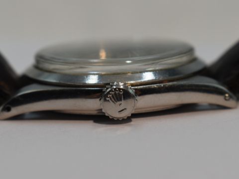 This is a winding mechanism not automatic, the seconds hand moves when wound up but it does stop frequently. We do not test for functionality. The batons have rust marks and some of the fluroscent dots are missing. unable to remove case back so unable to provide a serial or case number. The crown pulls out to wind and move hands and tightens up correctly. Some deep scratches to the glass. watch case looks in good condition