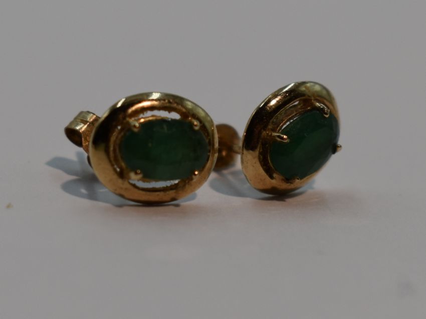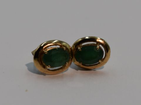 A pair of 9ct gold stud earrings having jade style oval stones