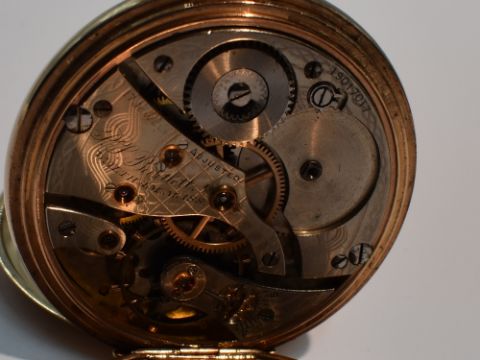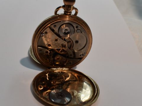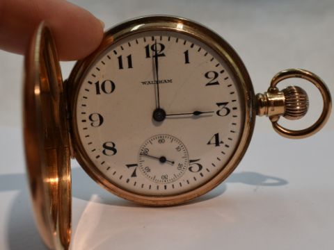A 9ct gold Hunter top wound pocket watch by Waltham no: 19017017, having Arabic numeral dial with subsidiary seconds, in plain case GW approx 94.6g (AF)