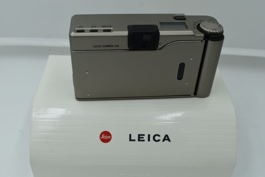 A Leica Minilux Compact Camera, titanium, serial no. 2145366, with Leitz Summarit f/2.4 40mm lens. In original packaging with instruction manual, Leica mini tripod, soft leather case, Leica CF flash unit