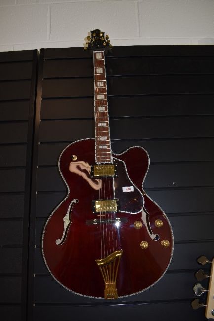 A Samich Greg Bennett 17' Archtop, solid spruce top, wine red , Duncan design pickups, grover turners etc, serial number 1190953413